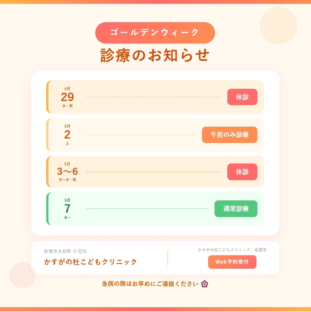 2026年ゴールデンウィークの診療は、以下の予定です。